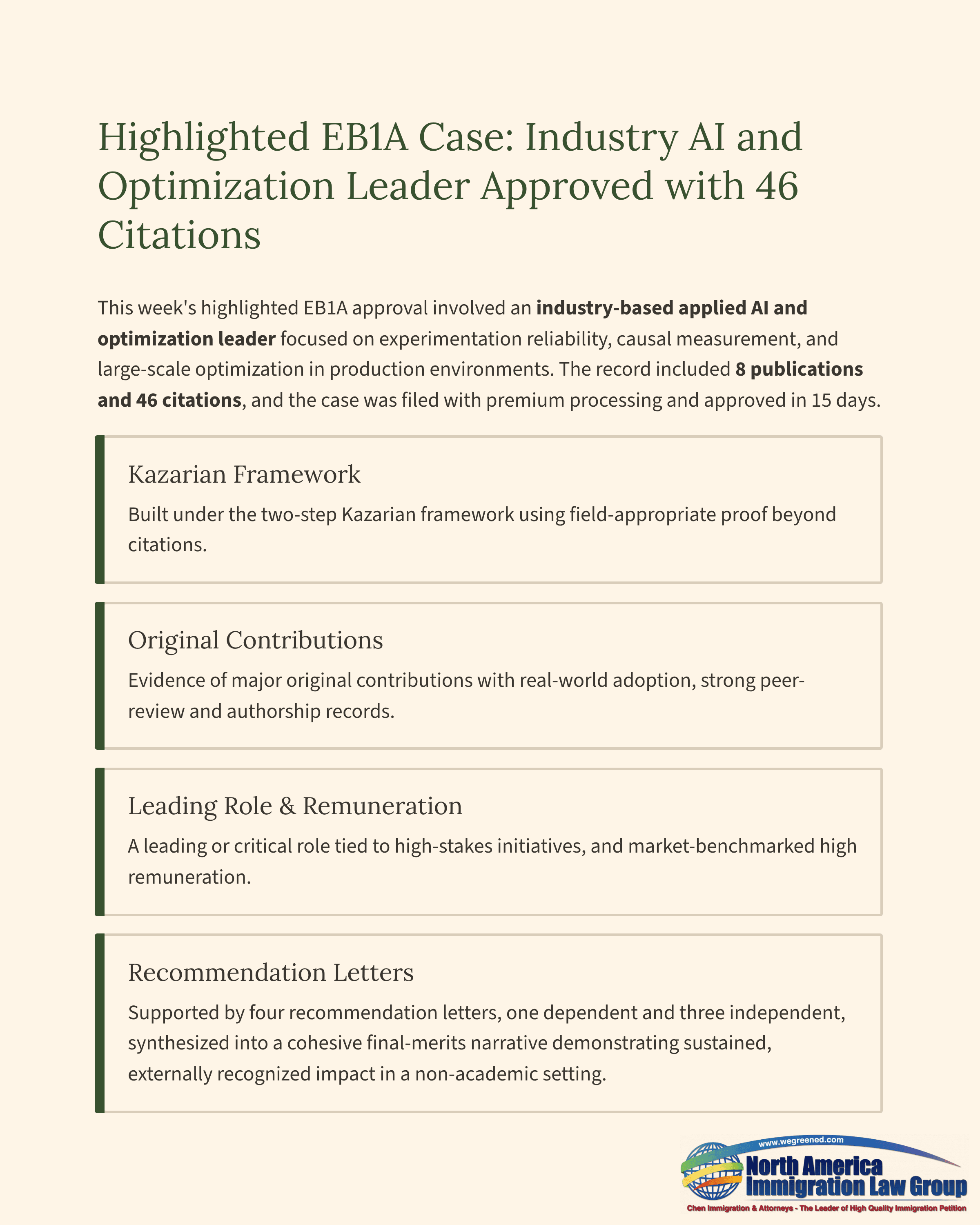Highlighted EB1A Case: Industry AI and Optimization Leader Approved with 46 Citations