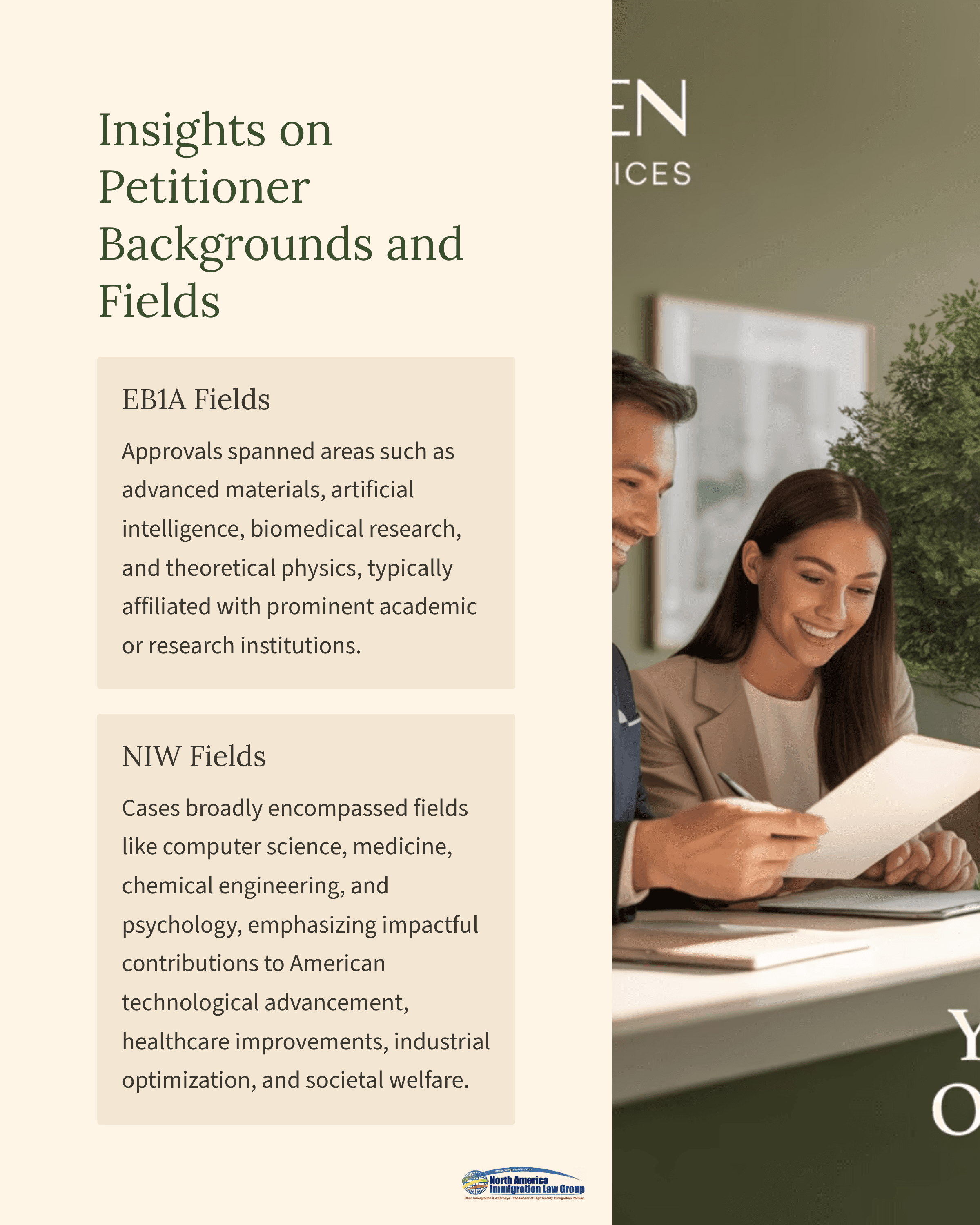 EB1A approvals spanned areas such as advanced materials, artificial intelligence, biomedical research, and theoretical physics, typically affiliated with prominent academic or research institutions. NIW cases broadly encompassed fields like computer science, medicine, chemical engineering, and psychology, emphasizing impactful contributions to American technological advancement, healthcare improvements, industrial optimization, and societal welfare.Highlighted Petitioner Case