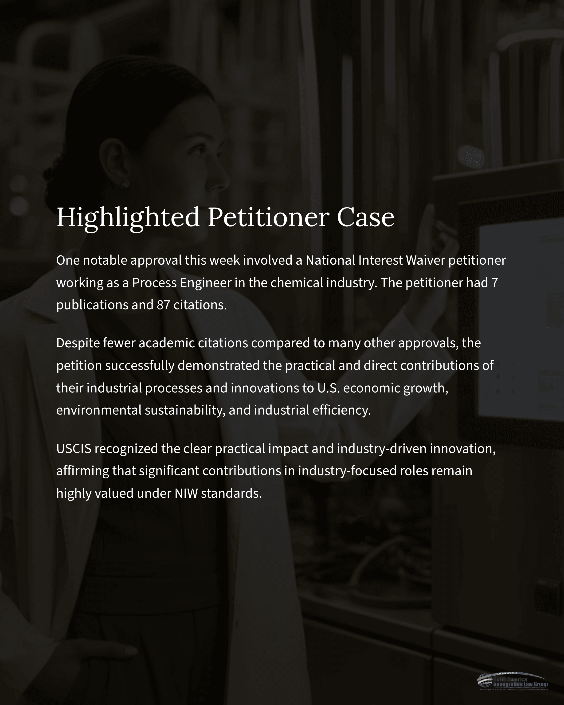 One notable approval this week involved a National Interest Waiver petitioner working as a Process Engineer in the chemical industry. The petitioner had 7 publications and 87 citations. Despite fewer academic citations compared to many other approvals, the petition successfully demonstrated the practical and direct contributions of their industrial processes and innovations to U.S. economic growth, environmental sustainability, and industrial efficiency. USCIS recognized the clear practical impact and industry-driven innovation, affirming that significant contributions in industry-focused roles remain highly valued under NIW standards.Adjudication Trends and Policy Observations